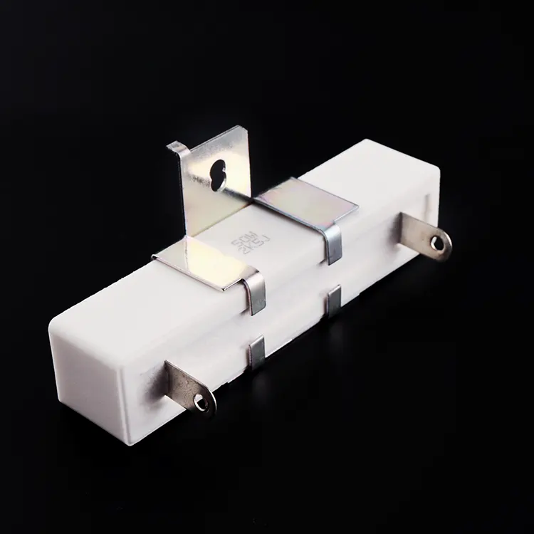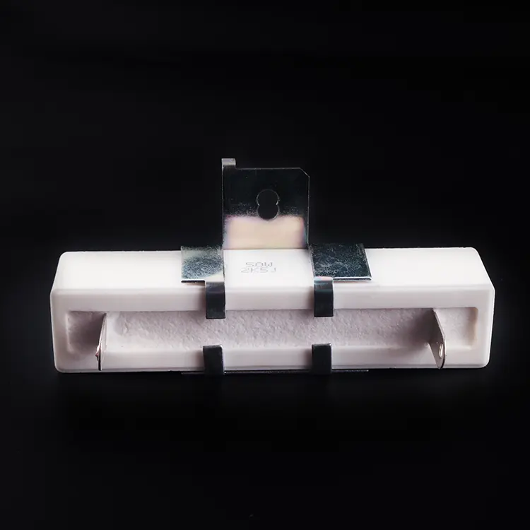 การสร้างตัวต้านทานซีเมนต์กำลังสูงนี้จัดลำดับความสำคัญของการนำความร้อนและความเสถียรทางกล องค์ประกอบตัวต้านทาน—มีจำหน่ายในรูปแบบลวดพันสำหรับการใช้งานที่มีความต้านทานต่ำและมีพัลส์สูง (สูงถึง 0.1Ω) หรือฟิล์มโลหะสำหรับข้อกำหนดที่มีเสียงรบกวนต่ำและมีความต้านทานสูง (สูงถึง 100kΩ)—ถูกห่อหุ้มไว้ในตัวเติมซิลิกาอนินทรีย์และบรรจุอยู่ในกล่องเซรามิกที่หน่วงไฟ การออกแบบ SQHG ที่เป็นเอกลักษณ์มีทั้งสายไฟแนวรัศมีสำหรับการเชื่อมต่อไฟฟ้าและขายึดในตัวพร้อมรูที่เจาะไว้ล่วงหน้า (โดยทั่วไปคือเส้นผ่านศูนย์กลาง 4.0 มม.) สำหรับการยึดสกรูหรือโบลต์ วิธีการเชื่อมต่อแบบคู่นี้รับประกันทั้งความสมบูรณ์ทางไฟฟ้าและความปลอดภัยของกลไก แม้ในสภาพแวดล้อมที่มีการสั่นสะเทือนสูง การวางแนวของบรรจุภัณฑ์อยู่ในแนวนอน โดยมีแกนยาวของตัวต้านทานขนานกับพื้นผิวการติดตั้ง ช่วยลดโปรไฟล์ความสูงในขณะที่เพิ่มพื้นที่สัมผัสสูงสุดสำหรับการถ่ายเทความร้อน